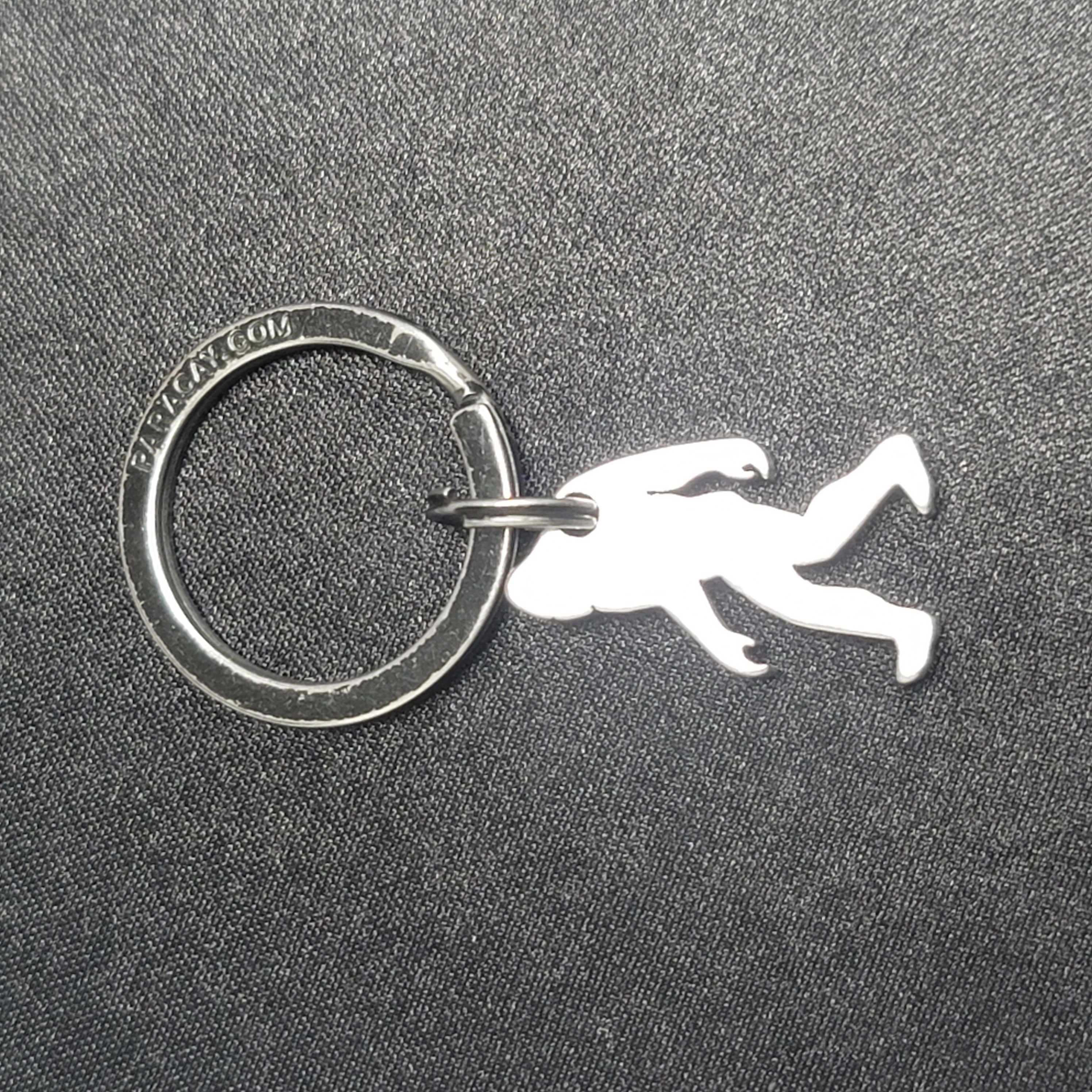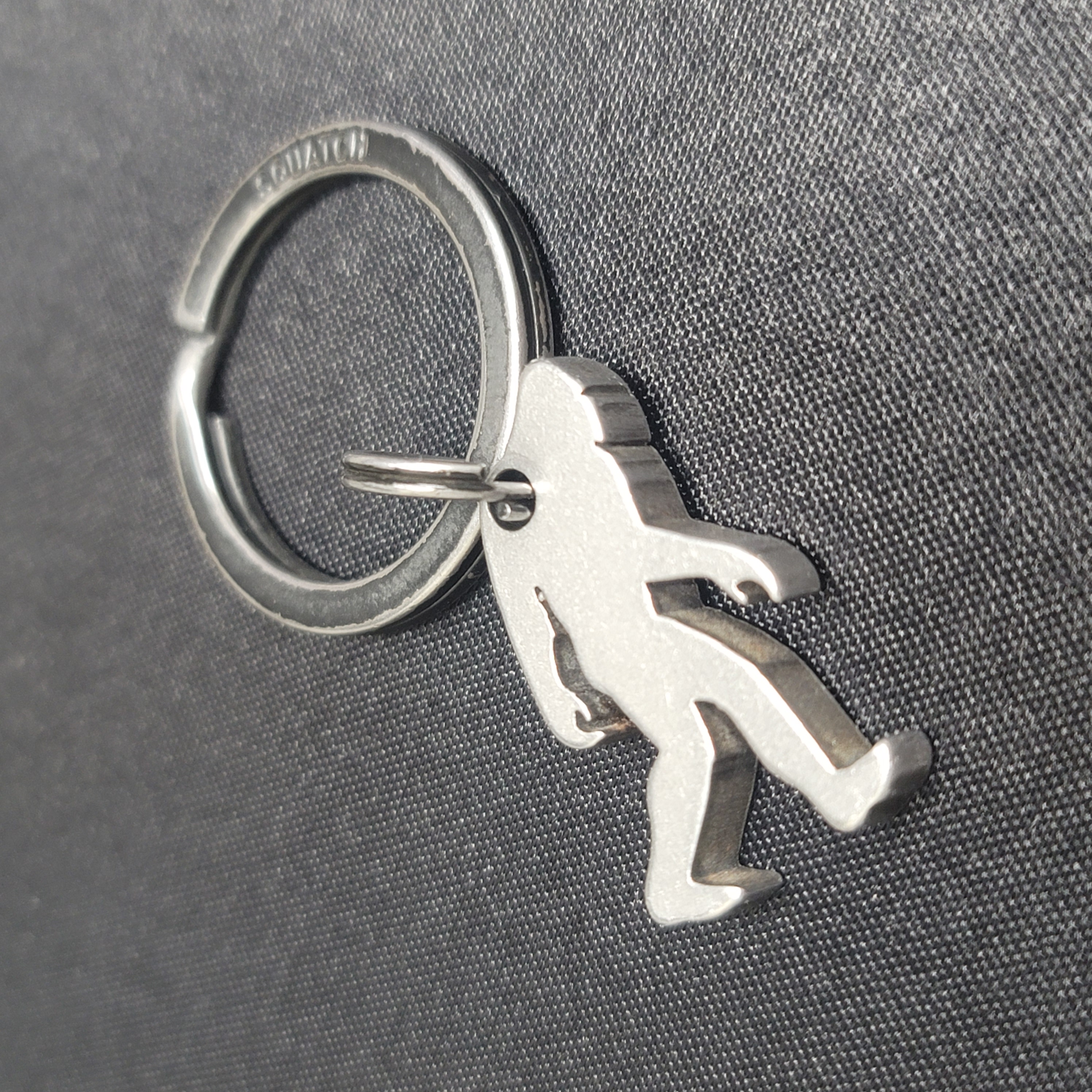 2.5 x 1.5" Sasquatch Bottle Opener. Amaze your friends with this stylish bottle opener. Opens bottles with ease. 4.5 mm thick stainless steel is finished by hand. Designed and made in the USA. Heavy duty and built to last. Includes custom black "squatch" keyring.
