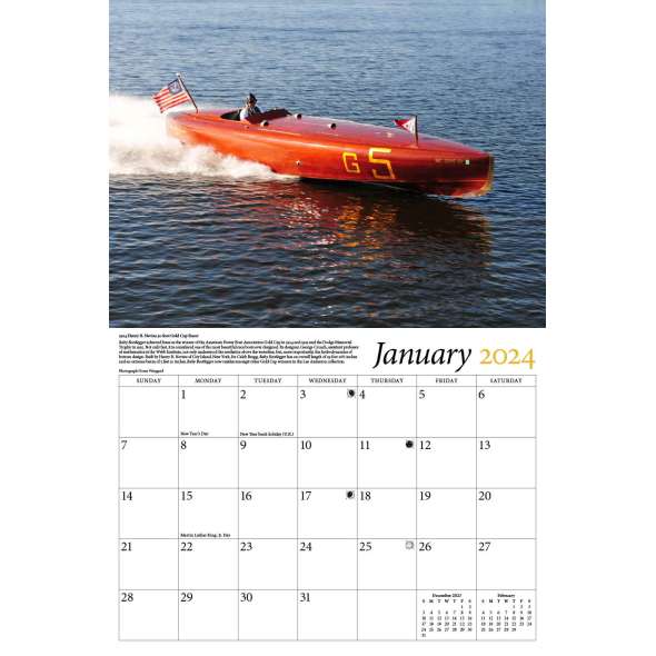 Elegant and fast, here are glorious examples of the golden age of motorboating. Sculpted in mahogany, brilliantly varnished, fixtured in chrome, and powered by reciprocating engines of vast displacement, these personal powerboats provided then, as they do today, a sense of exhilaration for their owners. The photographs and text of Classic Motorboats come from Norm and Jim Wangard, the publishers of Classic Boating magazine. This 2024 monthly wall calendar features: Large blocks for notes | Superb printing quality | Heavy 100-pound paper | Deluxe 11- by 14-inch size