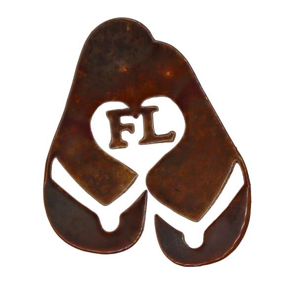 Laser-cut steel, stone tumbled and finished with Squatch Metalworks proprietary distressed metal patina treatment. Clear coated with durable automotive clear-coat. Backed with a Rare Earth magnet.