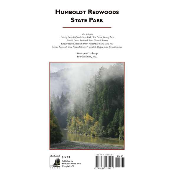 This is the largest-scale and most detailed map of Humboldt Redwoods, and is the only printed trail map of the park available to the public other than the official trail map and the park brochure. All official hiking trails were drawn from newly-acquired GPS data with a resolution of about 250 feet. Trail mileages are marked and most streets that have names are labeled. To help you keep track of your location, the map shows the locations of memorial grove markers, footbridges, panoramic viewpoints, and stairs. A UTM grid is provided to help with GPS navigation.